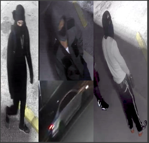 Video captured three suspects, but it appears a fourth person may have been involved as a getaway driver. A silver car appeared on the security video a few times.
